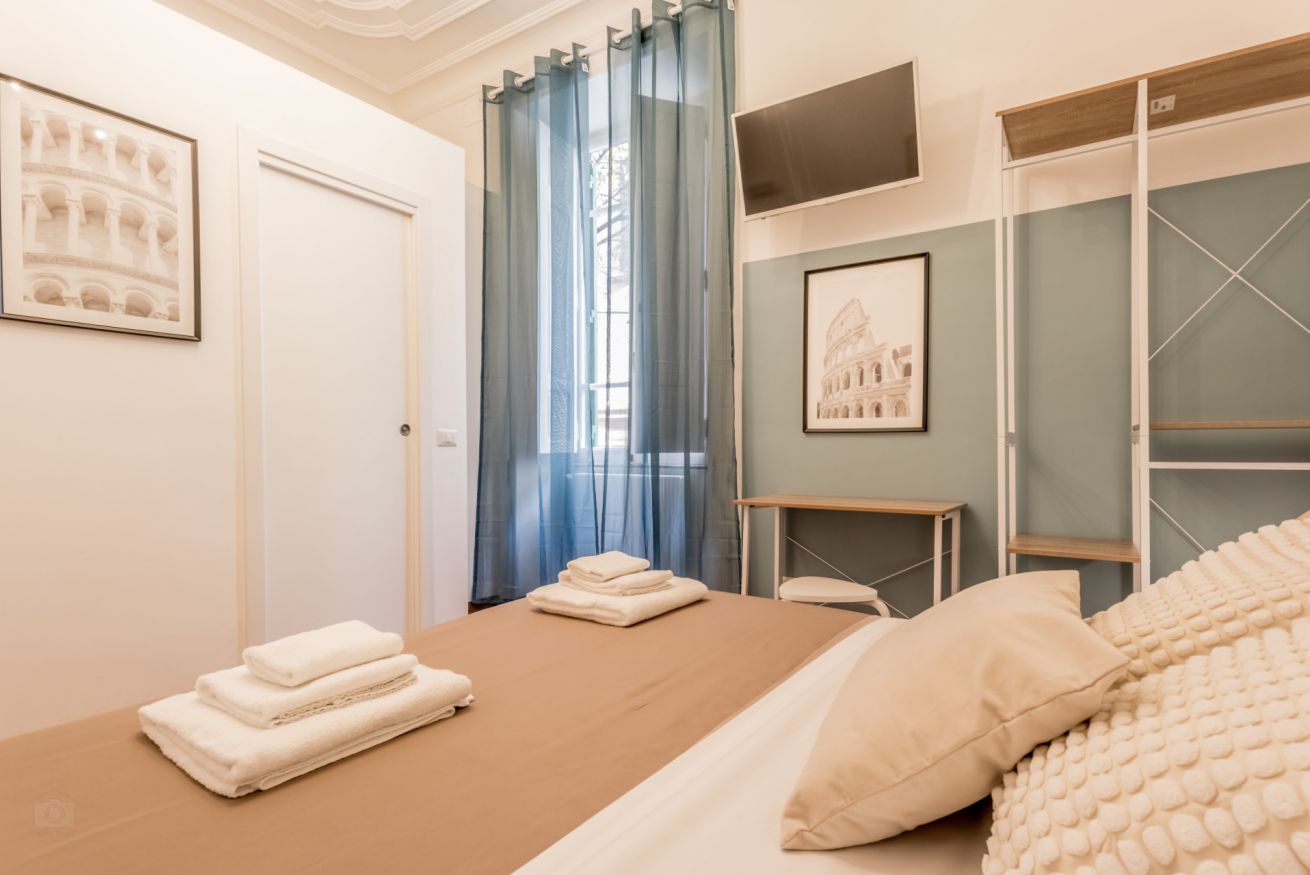 Elegante e luminosa camera doppia con bagno privato, situata al primo piano di Palazzo Sapienza, un affascinante edificio storico che ospita altri cinque alloggi. La posizione è strategica, a pochi passi dalla fermata della metro Policlinico e nelle vicinanze della stazione Termini e del centro di Roma. Gli ospiti possono usufruire di una cucina comune e di un delizioso giardino condiviso.